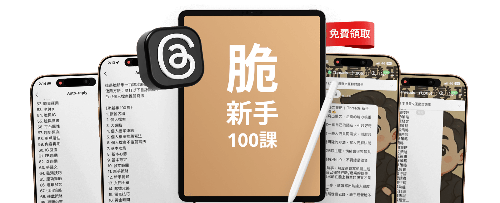 別擔心!我已經幫你整理好 《脆新手 100 課》完整清單,裡面涵蓋了從 帳號設定 → 發文技巧 → 行銷策略 所有新手必學重點。